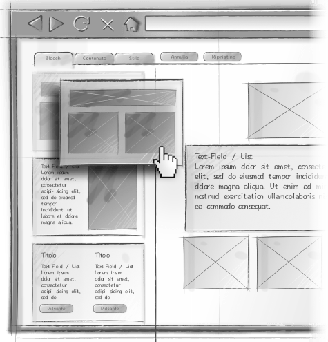 By moving your mose over a block a set of tool buttons to move, clone or remove a block.